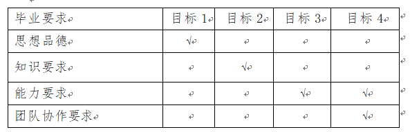 注:用“√”表示毕业要求对相应培养目标的支撑关系作用。