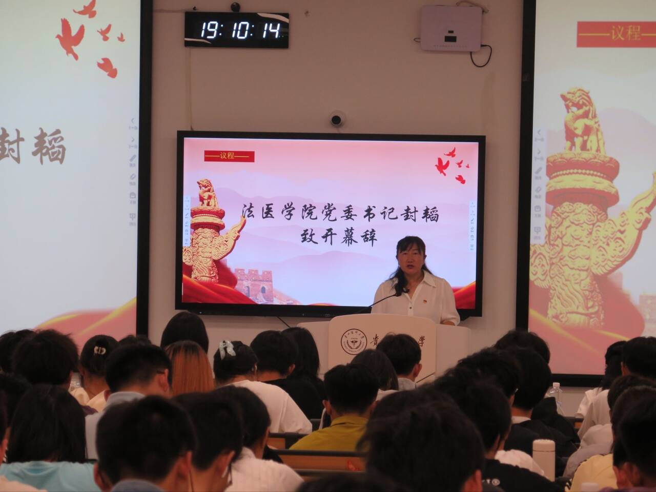 出席本次大会的领导与嘉宾有:校团委书记王妤煜,法医学院党委书记封韬、党委副书记杨晖、副院长任峥、正科级组织员张佳佳、团委副书记季晶焱、学生第一党支部书记杨美庆、行政助理何军臣,校学生会执行主席杨子千仟,马克思主义学院主席团成员,儿科学院主席团成员,影像学院主席团成员,以及法医学院2023级、2024级、2025级全体学生。2025级班长罗颖、徐成鹭主持大会。