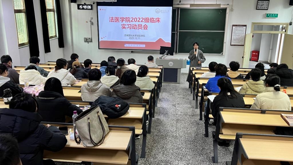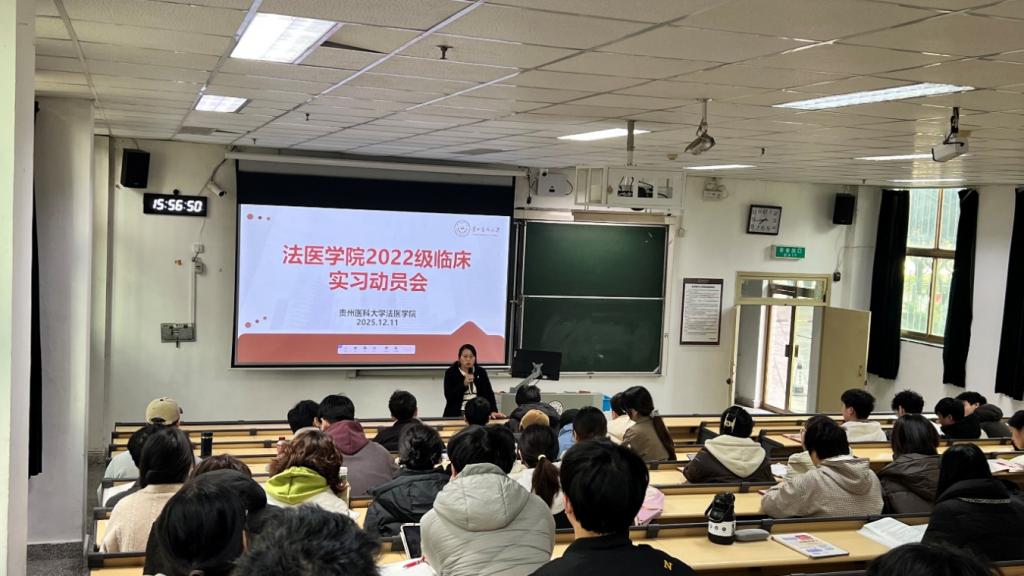 为帮助法医学子做好临床实习前的充分准备,明确实习目标与要求,12月11日,贵州医科大学法医学院在北京路校区综合楼3101教室召开临床实习动员大会。大会由辅导员张佳佳老师主持,党委副书记杨晖、法医学院副院长任峥出席,2022级全体学生参与。