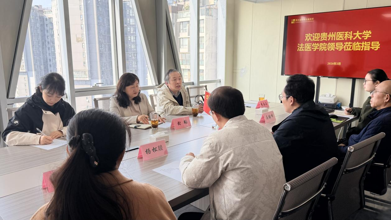 为深入推进访企拓岗促就业,深化校地、校企协同育人,搭建法医学高素质应用型人才实践平台,3月11日,法医学院党委书记封韬、党委副书记杨晖、副院长任峥、团委副书记季晶焱一行4人,赴贵州鉴识法医司法鉴定所开展访企拓岗专项行动。贵州鉴识法医司法鉴定所负责人龙天林主持座谈,鉴定所全体工作人员参会。